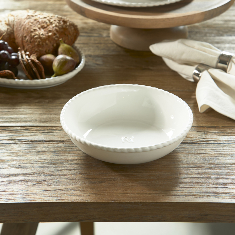 Voeg wat elegantie toe aan je dinertafel met het prachtige Elegant Twist serveerschaal. De gevlochten rand geeft deze schaal een speelse,verfijnde uitstraling. Het RM Monogram logo is subtiel geëmbosseerd, wat het bord extra stijlvol maakt. Perfect voor een gezellig diner met vrienden en familie. Deze porseleinen schaal heeft een dia van 24cm. Maak je tafelsetting compleet met de mooie Elegant Twist serie.