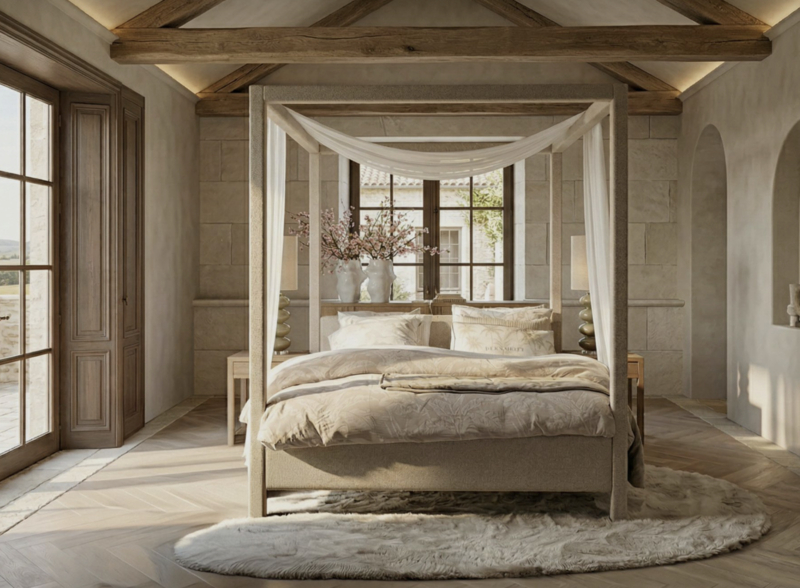 Prachtig hemelbed, inclusief twee comnfortabele matrassen 90x200 cm.