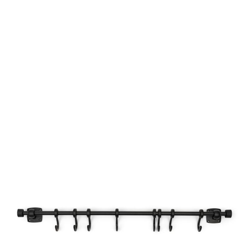 De Greenwich Village Decoration System is een multifunctionele kapstok. De zwarte kapstok bestaat uit een stang met daaraan acht haken. Deze zijn naar wens te verschuiven. Je kunt de ophangset natuurlijk gebruiken in de hal als kapstok, maar ook in een zwarte keuken is dit systeem handig voor het keukentextiel of de kookbenodigdheden.